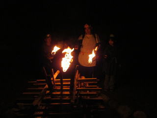 夜はキャンプファイヤーです。一人ひとりがたいまつを持ち、火の明るさとぬくもりを感じる時間を過ごしました。友情も深まる夜になりました。