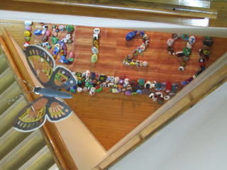 今日の5時間目は授業参観日。来年の創立130周年を祝うストーンアートを親子で作りました。実行委員の担当の方々に細かい点まで打ち合わせしていただいたおかげで、スムーズに予定した1時間で作品ができました。作品には、これから担当職員がニスをかけて仕上げ、校舎内に展示します。来年の創立記念式に校舎回りの犬走を華やかに飾れたらいいなと考えています。親子がうらやましく感じた1日でした。