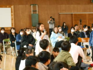 縦割り班ごとに分かれ、ジェスチャーゲームを始めると、班のみんなが笑顔いっぱいにゲームを楽しんでいました。